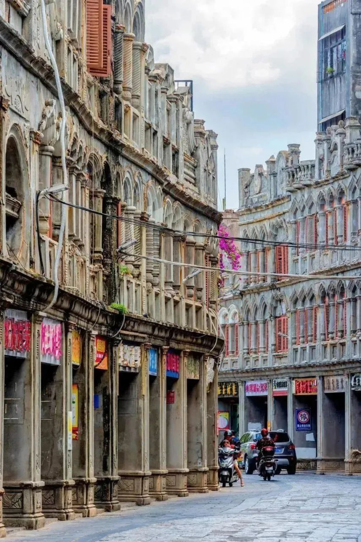 不边远的文南老街,兴修于1920年代,是海南第三大骑楼老街。虽历经岁月沧桑,部分建筑经由修缮,但那浓郁的南洋风情依旧未减。穿梭于骑楼之间,彩色的窗棂、破败的墙体,在夕阳的照耀下,勾画出一幅幅充满故事的画面,每一砖一瓦齐泄气着浓厚的文艺气味,让东说念主忍不住容身流连。