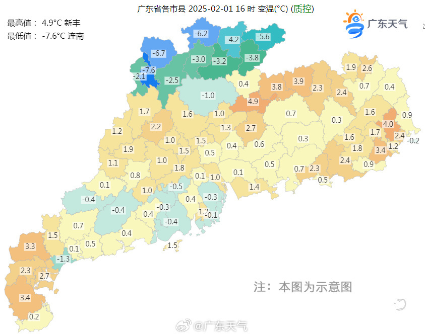 据征象台及时监测,粤北地区本日16时气温实况同比昨日急速着落,连南同比着落近8℃。冷空气将于初五入粤“开工”,终结雾气,带来降雨和降温。
