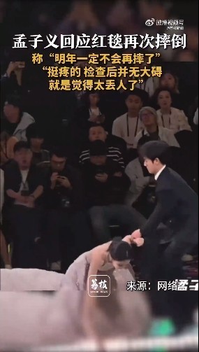 12月21日,演员孟子义在星光大赏领奖上台时不测跌倒。在领奖时自嘲称:“我昨年摔跤了,本年又摔跤了,来岁一定不会再摔跤了。”白鹿也玩笑说念:“下次不要再摔了,孟姐。”在后台孟子义检讨后报吉祥称“并无大碍,等于太丢东说念主了。”网友:“孟子义这一摔摔出了神图。”