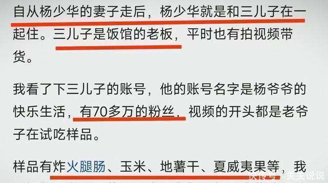 话说追念,老爷子生前阿谁叫“杨爷爷的昂然生计”的账号,内部的视频,实在齐是在吃东西,况兼吃的齐是些品牌食品,明眼东说念主一看就知说念是在带货。可老爷子我方景色吗?我看有时,要否则也不会说出那句“当驴使唤”了。