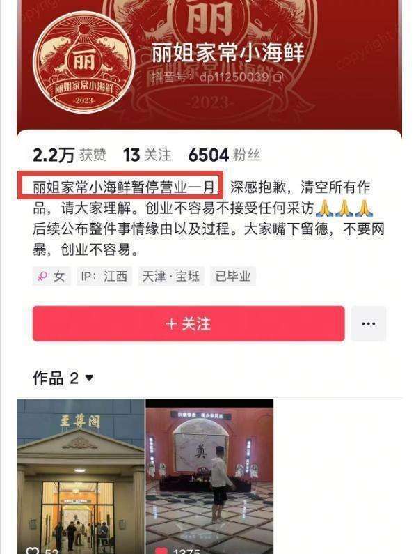 老爷子走得太倏得,前脚还在“丽姐家常小海鲜”饭馆剪彩,后脚东说念主就没了,这事儿搁谁身上齐得洽商洽商。更让东说念主合计不对劲的是,这家饭馆,你说巧不巧,老爷子死亡后,平直晓喻暂停营业一个月,更离谱的是,东说念主家雇主还在主页上放出话来,说要公布事情的前因后果,这瓜,吃瓜大众是指定要蹲一个的。还有个事儿,也不知说念大众正式没,饭馆简介上写着“已离开天津”,这…难不行是连夜跑路?这可就让东说念主胡念念乱想了,这内部到底藏着什么猫腻?