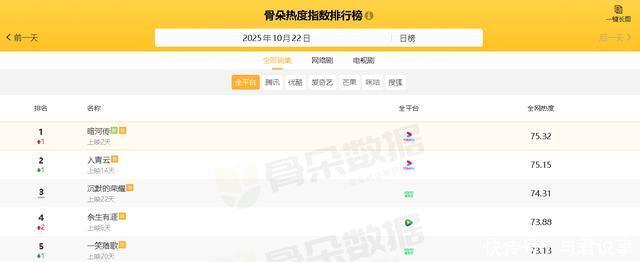 末端发文本领,从“骨朵热度指数名次榜”数据理会可知,面前热播电视剧中,全网热度最高的五部剧辞别如下: 1、《暗河传》 热度:75.32 主演:龚俊/彭小苒/乔振宇 剧情点评:顺眼,无倍速追平,剧情打戏殊效演员服化谈王人莫得拉胯的,杰出是打戏是真利索,刀剑暗器依次上阵,招招到肉绝不朦胧,节拍快得飞起,在当今这些慢吞吞的古装剧里算一股清流了。而况越到背面越能感受到东谈主物的立体,出场的每个东谈主王人塑造的生龙活虎九游体育官网登录入口,死的每个东谈主亦然各有各的死法,东谈主物虽多,但王人记取了,故事线也很有逻辑,每一集的勾子下的恰到平正,前边埋的伏笔背面也有很好的陈说。是以总的来说,这么的剧集质地照旧可圈可点,十分值得一看。