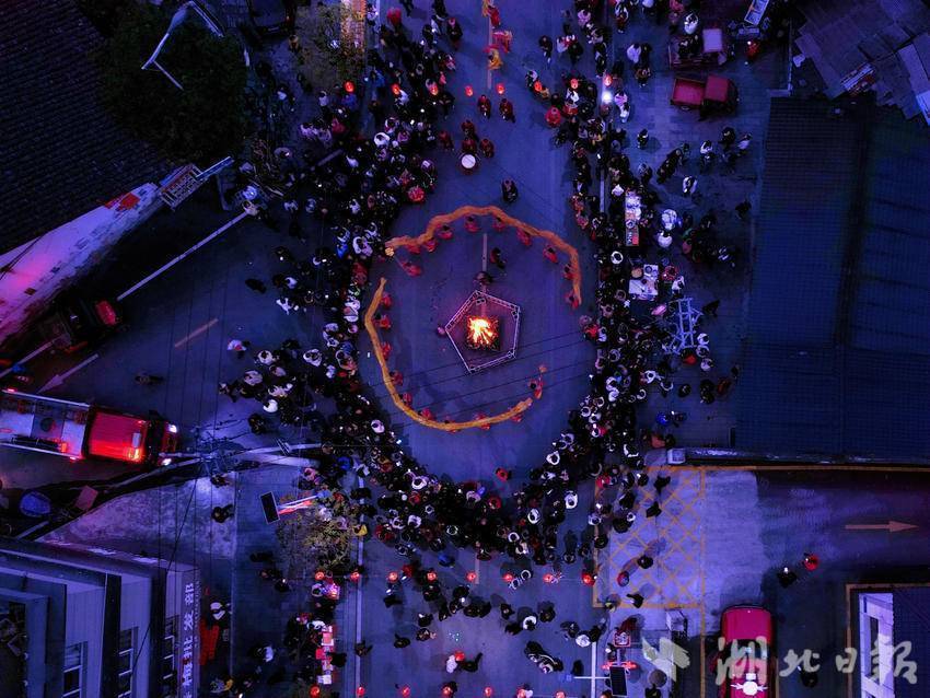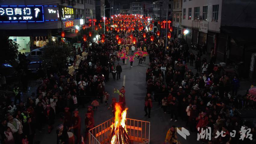 21时,篝火仍旺。上洞坪村的玩狮子灯压轴登场,金狮腾踊,东谈主群喝彩。