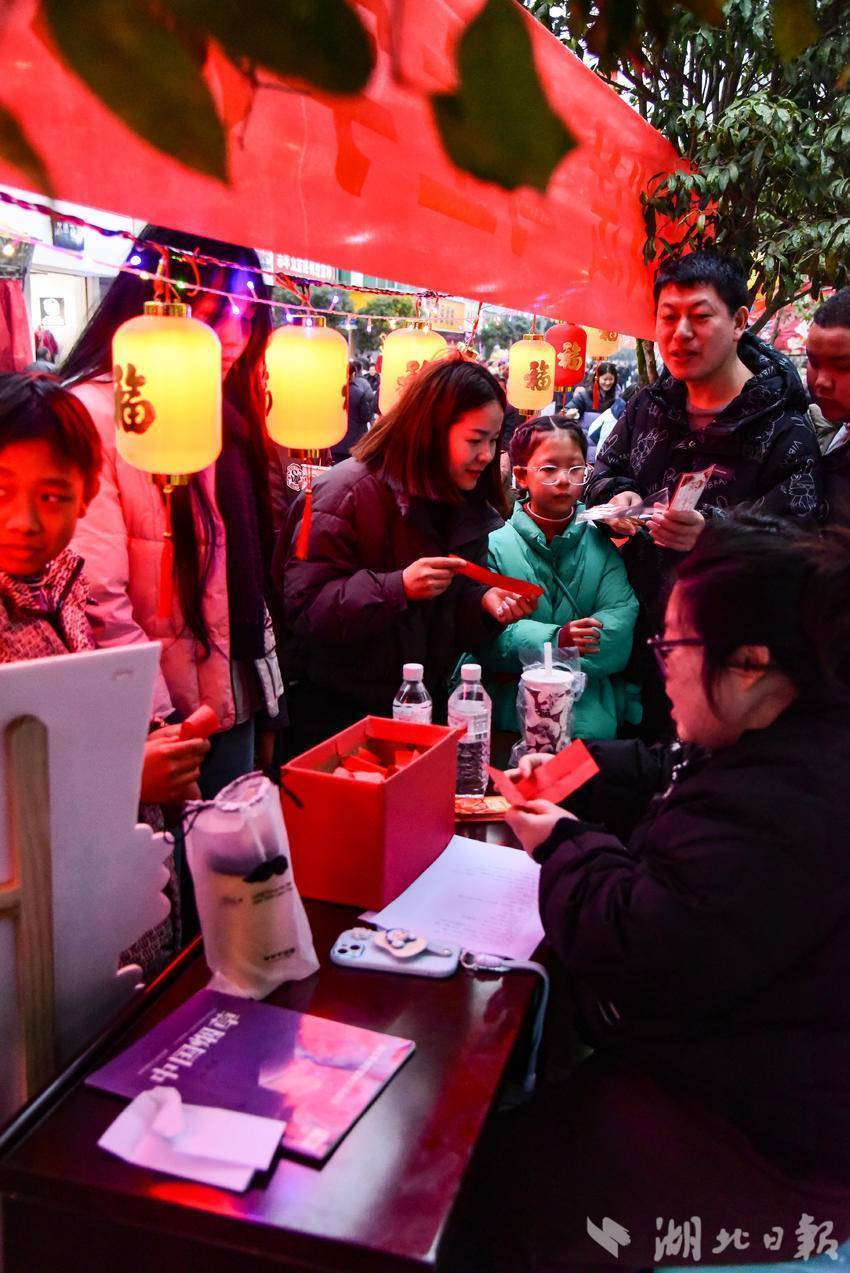 对联桌前排起长龙,墨迹未干就被捧走;文虎廊下,一家老少仰头猜谜,答对的从规定所干警手里接过奖品;套圈区惊叫迭起,扎气球砰砰作响;篝火边,孩子们拉手转圈;相亲角灯光微暖......